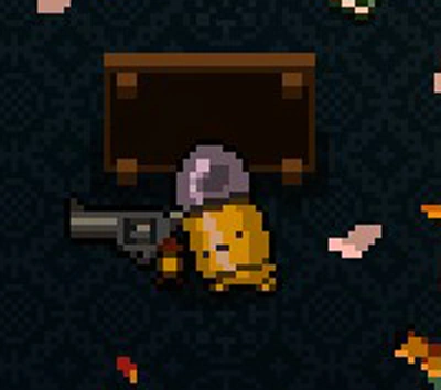 On some occasions the player will also encounter incapacitated Bullet Kin lying on the floor. These Bullet Kin are props and disintegrate upon touch. They can be found in mass quantity in Oubliette.