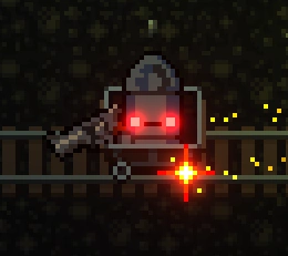 In the Black Powder Mine, they can also ride Minecarts. In fact, if there are any unoccupied Minecarts within the room, they will take priority by walking towards them to ride in.